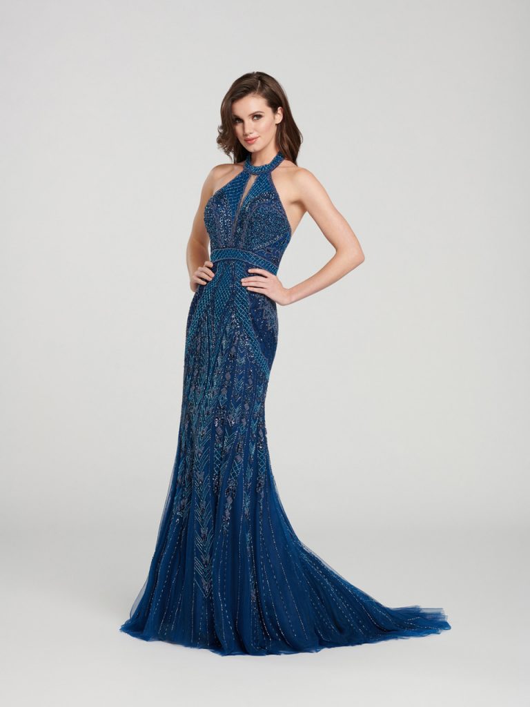 VESTIDO LONGO TODO EM BRILHO AZUL MARINHO