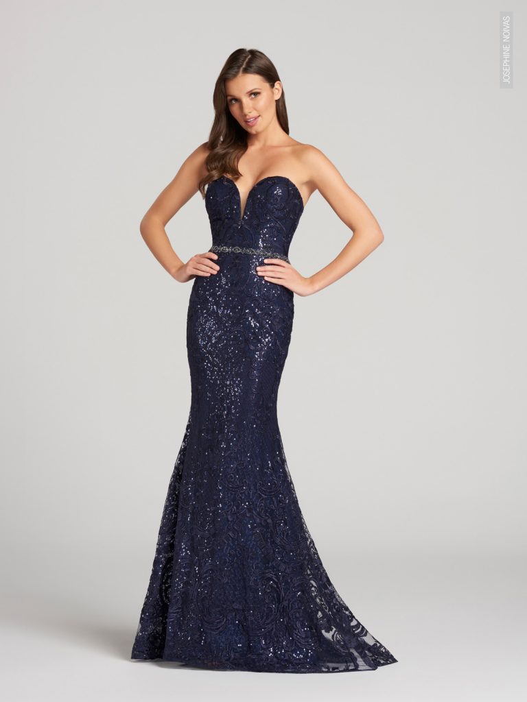 Vestido de Festa – Sereia tomara que caia azul marinho com brilho