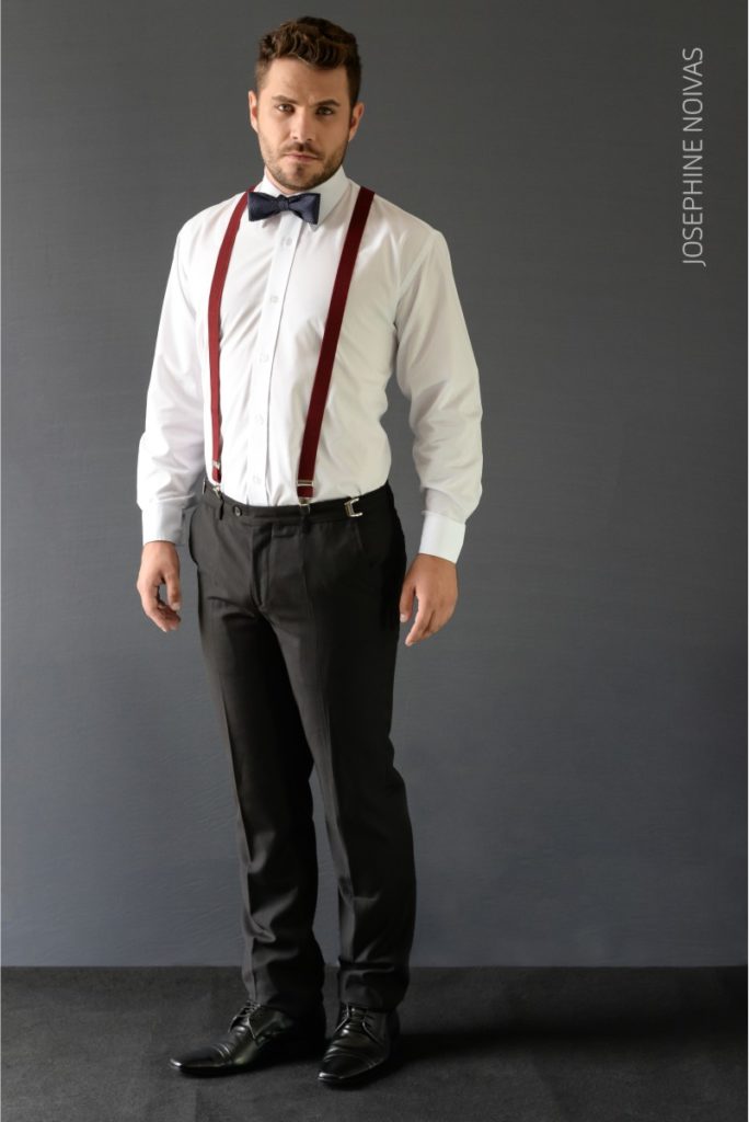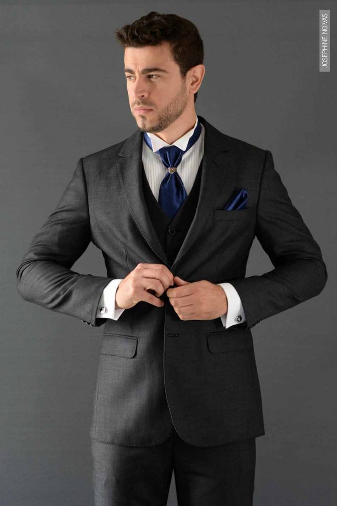 Traje de Noivo – Cinza Escuro com Gravata Azul